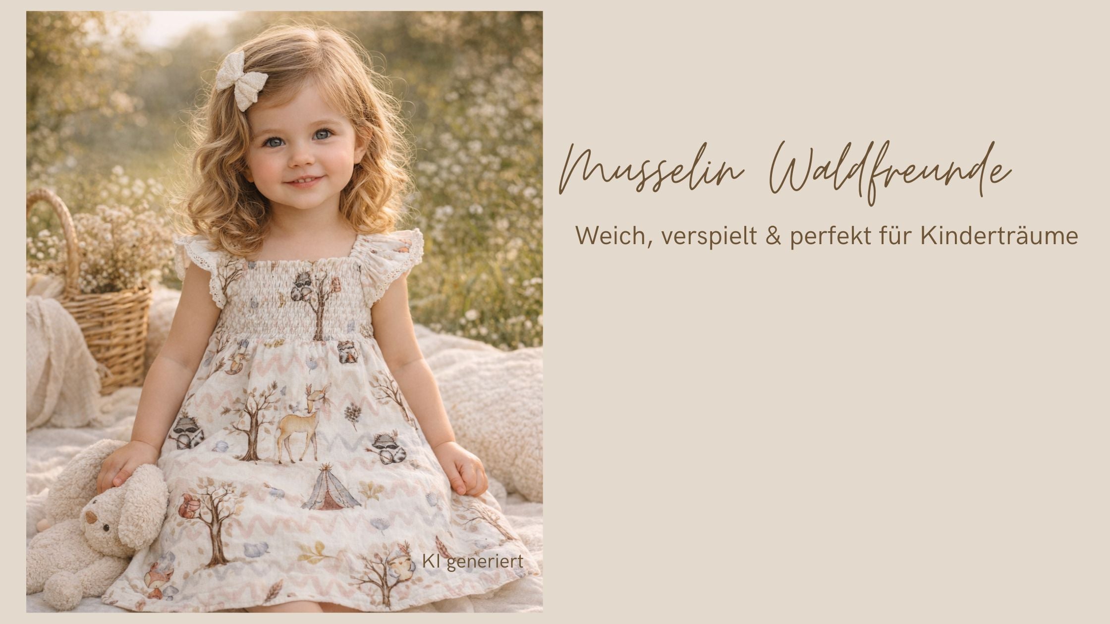 Dieses liebevolle Nähbeispiel zeigt eine Kinderweste aus weichem Bouclé, kombiniert mit einem Shirt aus unserem Jersey „Zarte Blümchen“. Das Bild wurde mit KI generiert und dient als Inspiration, wie harmonisch sich unsere Stoffe miteinander kombinieren lassen – perfekt für gemütliche Alltagslooks mit Stil.