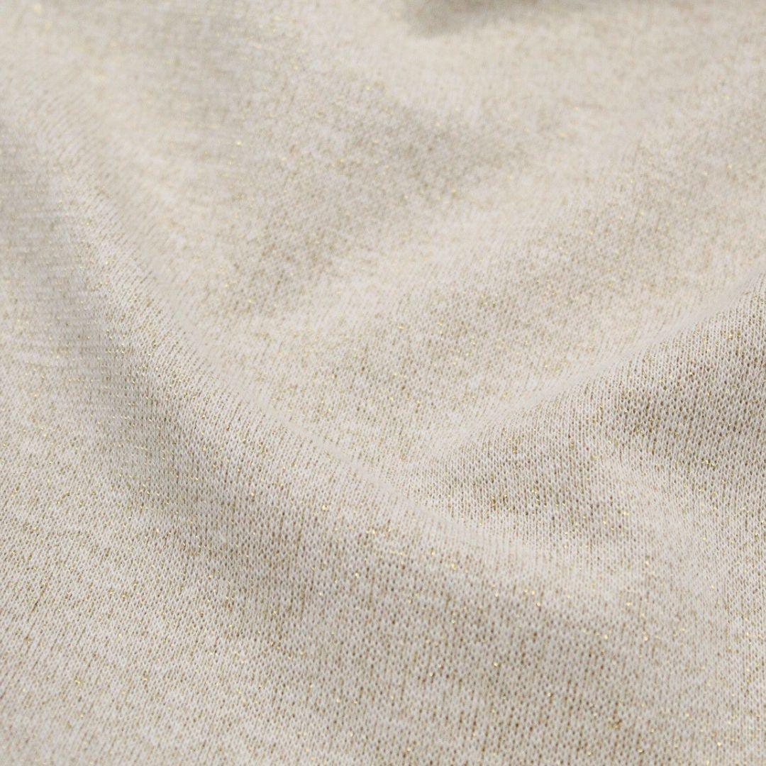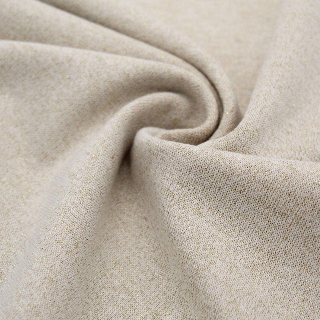 Bring Glanz in deine Nähprojekte mit unserem Bündchenstoff! Der elastische Stoff besteht aus 75% Baumwolle, 20% Lurex und 5% Elastan – ideal für kreative, individuelle Nähideen mit einem Hauch Glamour.